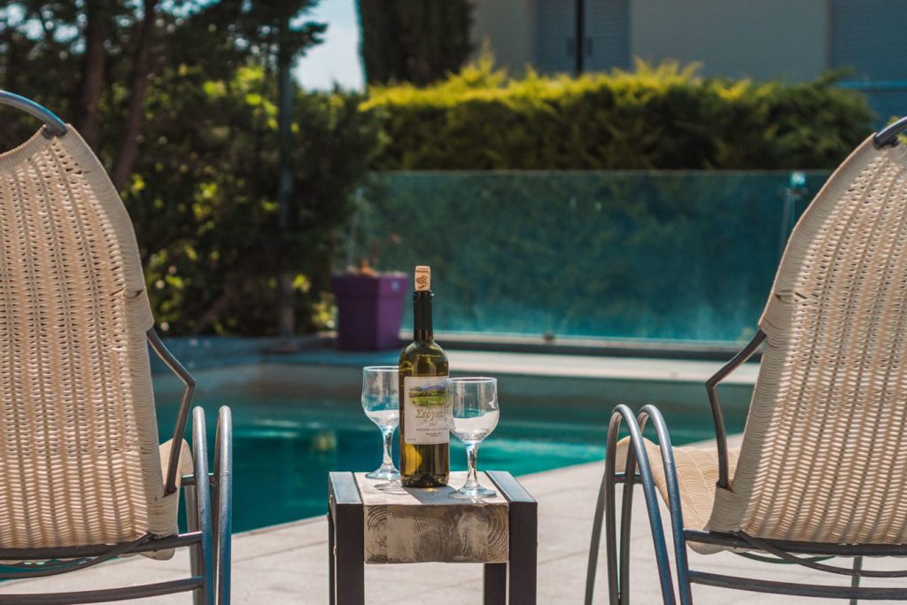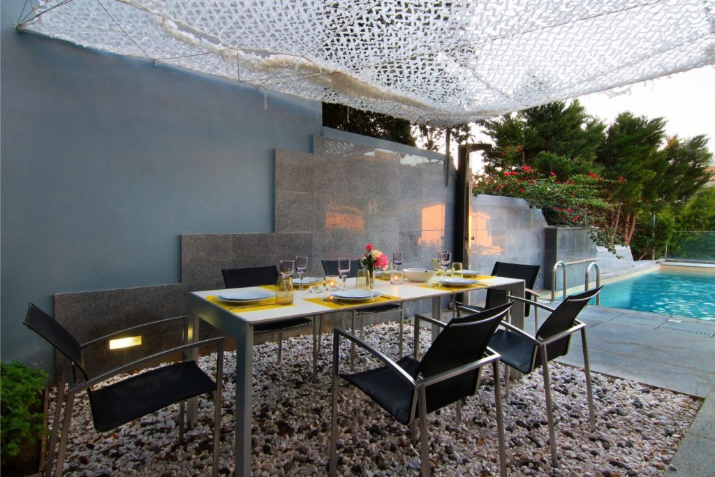 Σε εξωτερικούς χώρους η κατοικία διαθέτει πισίνα με καταρράκτες για μια καταπραϋντική βουτιά απολαμβάνοντας τη γαλήνη του τοπίου. Χαλαρωτικές ξαπλώστρες είναι διαθέσιμες γύρω από την πισίνα, καθώς και ένα υπαίθριο καθιστικό, όπου οι επισκέπτες μπορούν να χαλαρώσουν και μια επιπλέον εξωτερική τραπεζαρία ιδανική για μια περιστασιακή συγκέντρωση ή ένα ειδικό ιδιωτικό δείπνο.